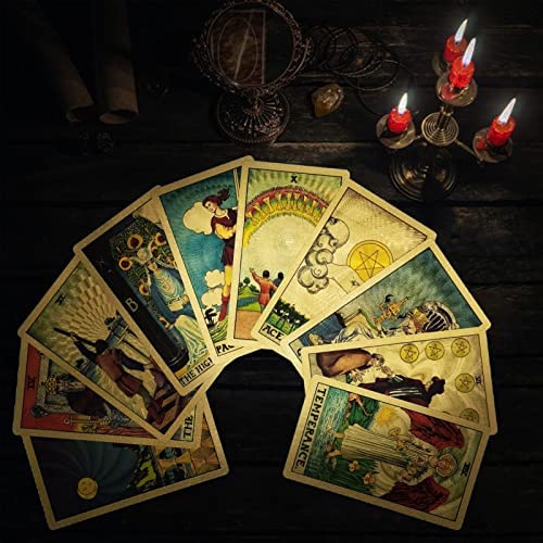 78 Gold Foil Tarot Cards Deck- 78 classic tarot designs. Extraordinary sense of retro historical design. Each card is designed with gold foil. Very exquisite and luxurious.Reproduce the infinite value of the classic Tarot. Full Card Guidebook- Each card comes with detailed instructions. Full English Tarot and full English detailed guide book annotations.Its easier to get started. PVC plastic material- Resistant to deformation.Daily use will not produce any creases. Waterproof and washable. Durable and very affordable. General Tarot- Both beginners and professional enthusiasts can master and use it perfectly.Greatly extend the use of Tarot. Of course, as a gift Smoostart Tarot is also a perfect choice. Interesting & Fun entertainment- It is a good way to forecast fate when you on the party with your friends.