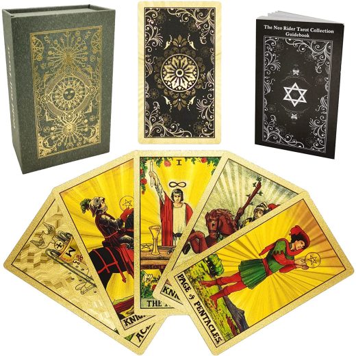 78 Gold Foil Tarot Cards Deck- 78 classic tarot designs. Extraordinary sense of retro historical design. Each card is designed with gold foil. Very…