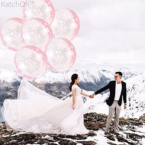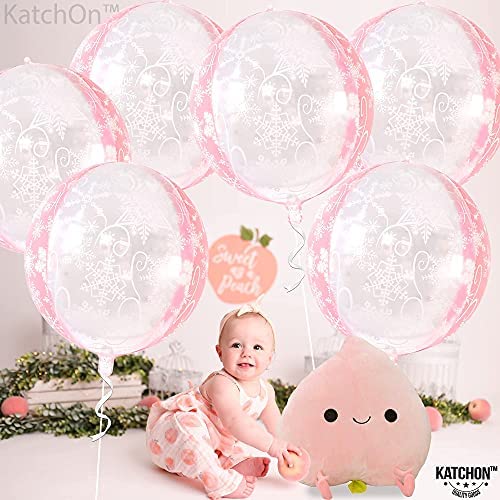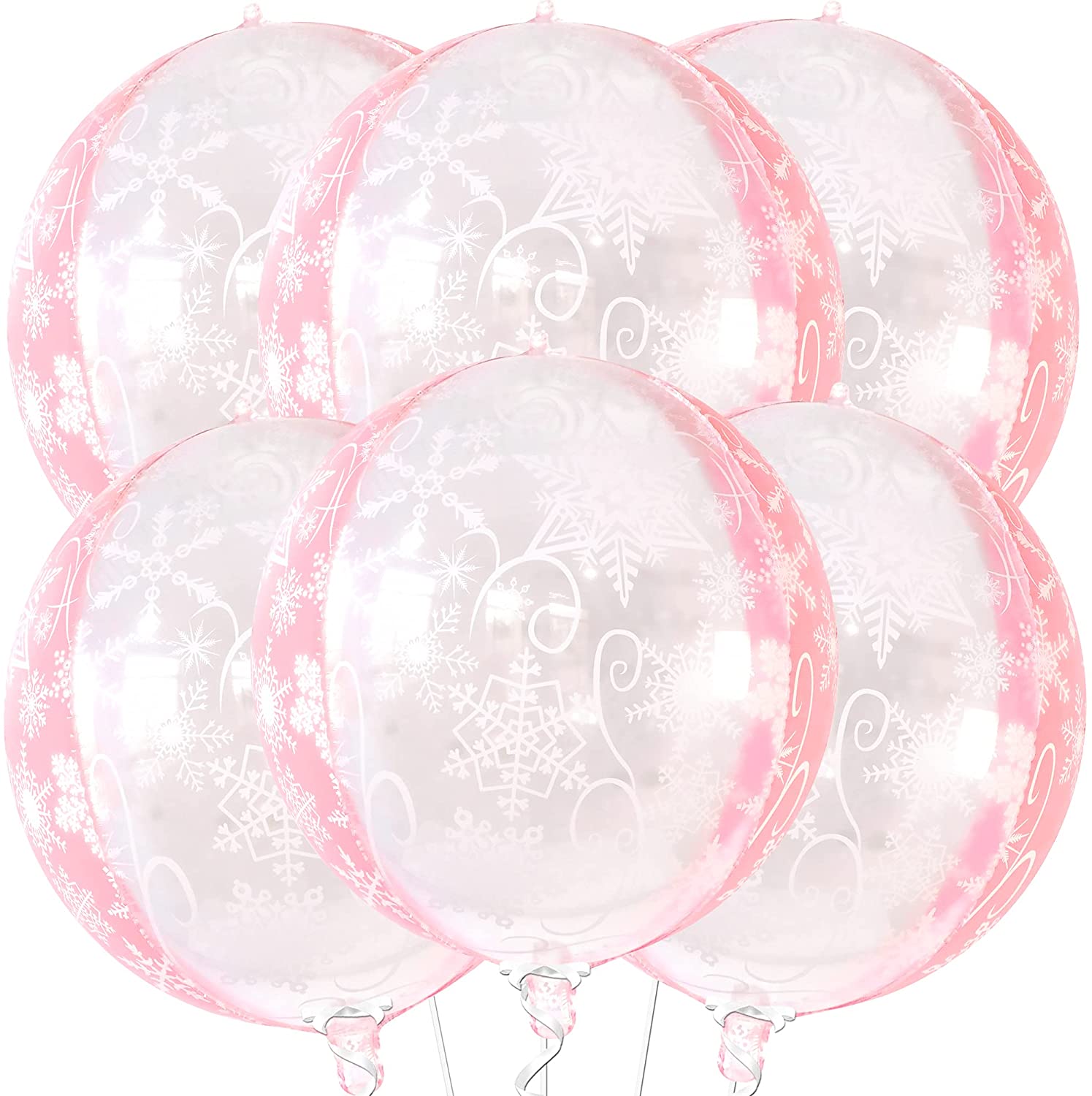Snowflake Balloons Pink for Winter Decoration – Large 22 Inch, Pack of 6 | 360 Degree 4D Round Clear Snowflake Foil Balloon | Transparent Mylar Winter Balloons for Birthday, Gender Reveal Decorations