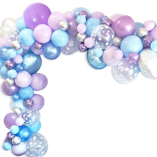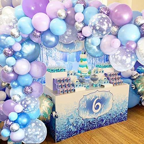 Snowflake Party Balloon Garland Kit, Ice Princess Birthday Decorations, Purple Blue Round Balloons Winter Girl Baby Shower 107PCS