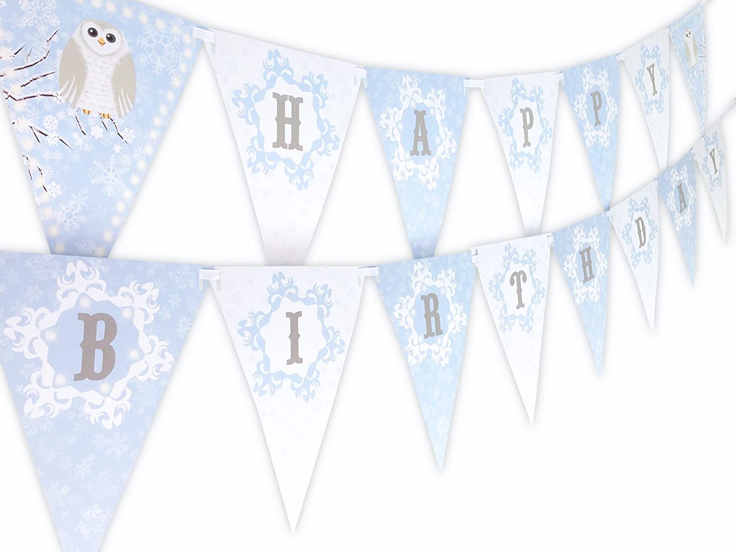 Snowy Owl Blue Happy Birthday Banner Pennant