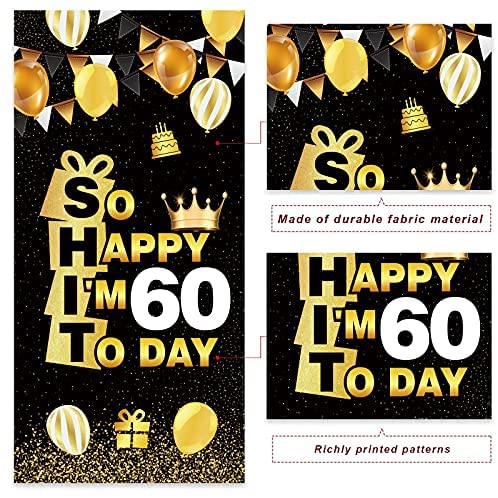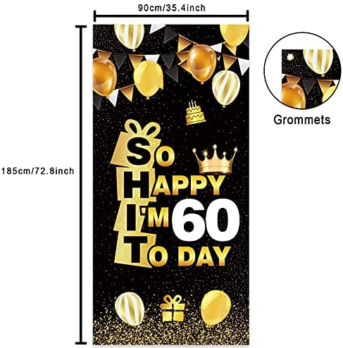 So Happy Iu2019M 60 Today Black Golden Banner Backdrop Crown Hallo Sixtieth Cheers to 60 Years Old Theme Decor for Man Woman Happy 60th Birthday P…