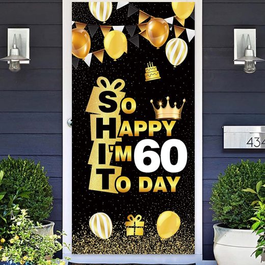 So Happy Iu2019M 60 Today Black Golden Banner Backdrop Crown Hallo Sixtieth Cheers to 60 Years Old Theme Decor for Man Woman Happy 60th Birthday Party Photo Studio Prop Flag Decorations Favors Supplies