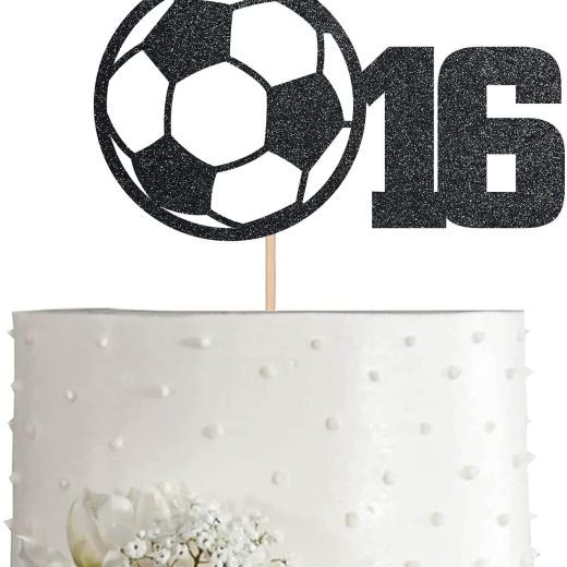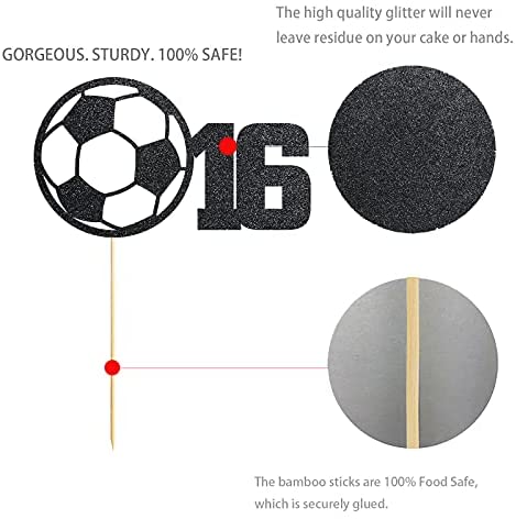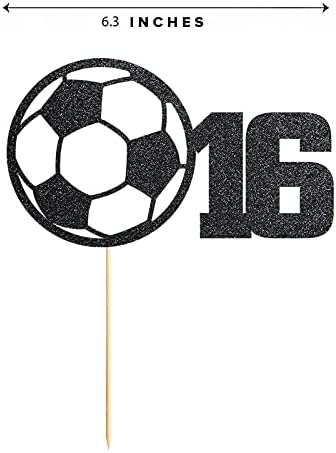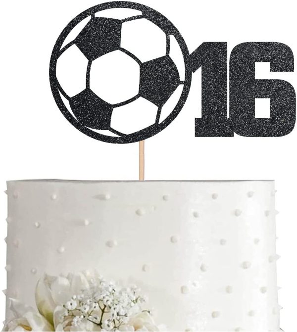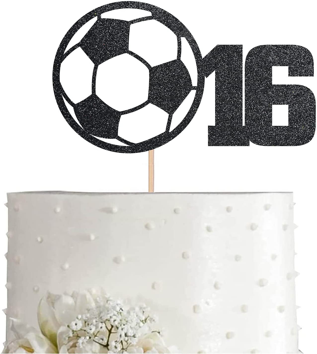 Soccer 16th Birthday Cake Topper Black Glitter Sport Boy Girl 16 Years Birthday Party Supplies, Decorations