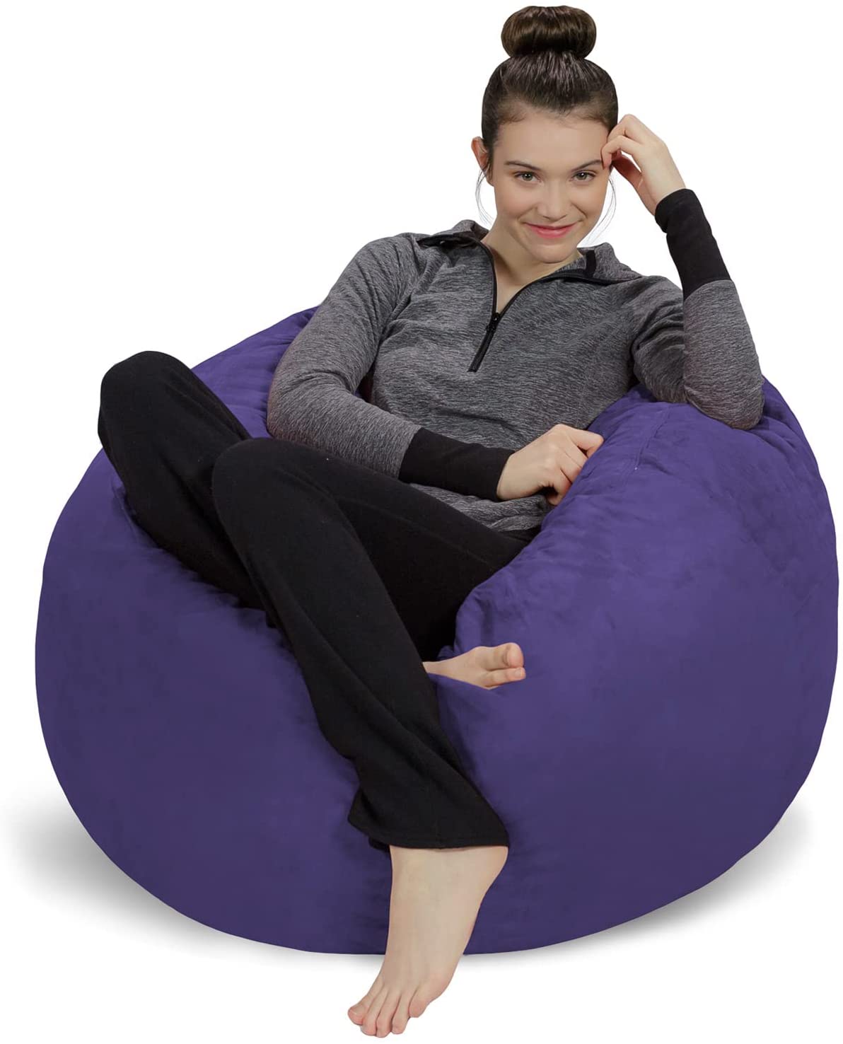 Sofa Sack Bean Bag Chair: 3 Memory Foam Furniture Bean Bag – Medium Sofa with Soft Micro Fiber Cover – Bright Purple