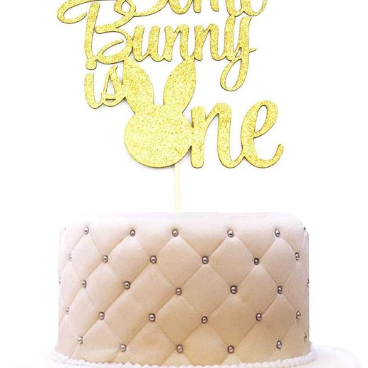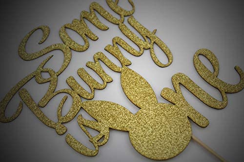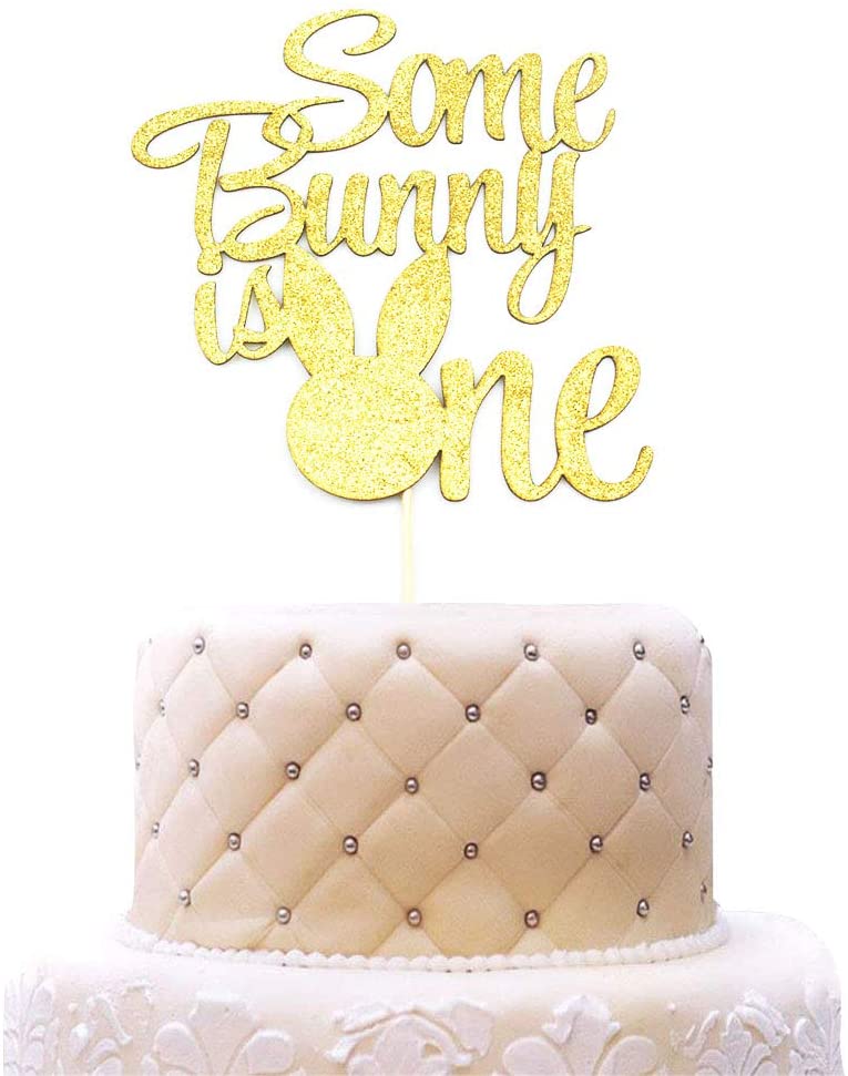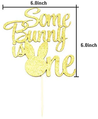 Some Bunny Is One Cake Topper, Boys Girls First Birthday Party Decorations, Bunny 1 Cupcake Toppers – Gold Glitter