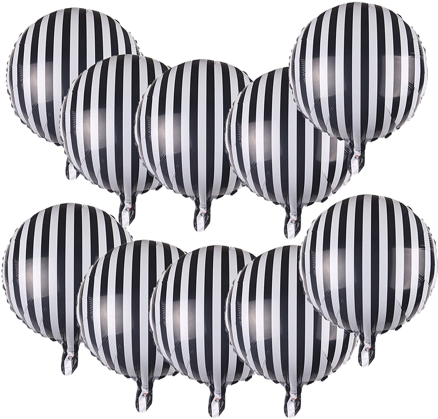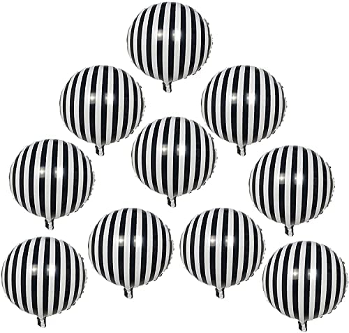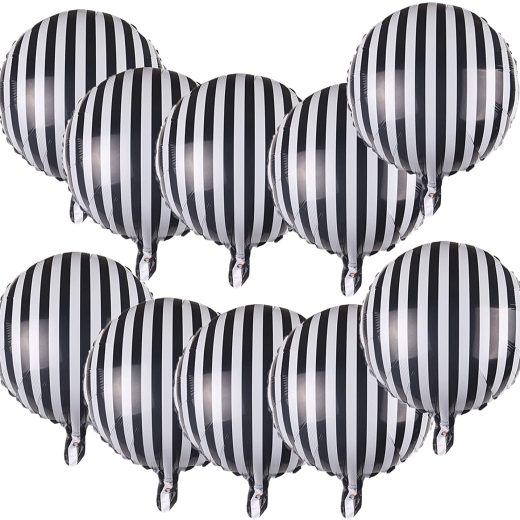 Soochat 10 Pcs Striped Balloons Black and White Foil Balloons Checkerboard Round Balloons for Party Decoration