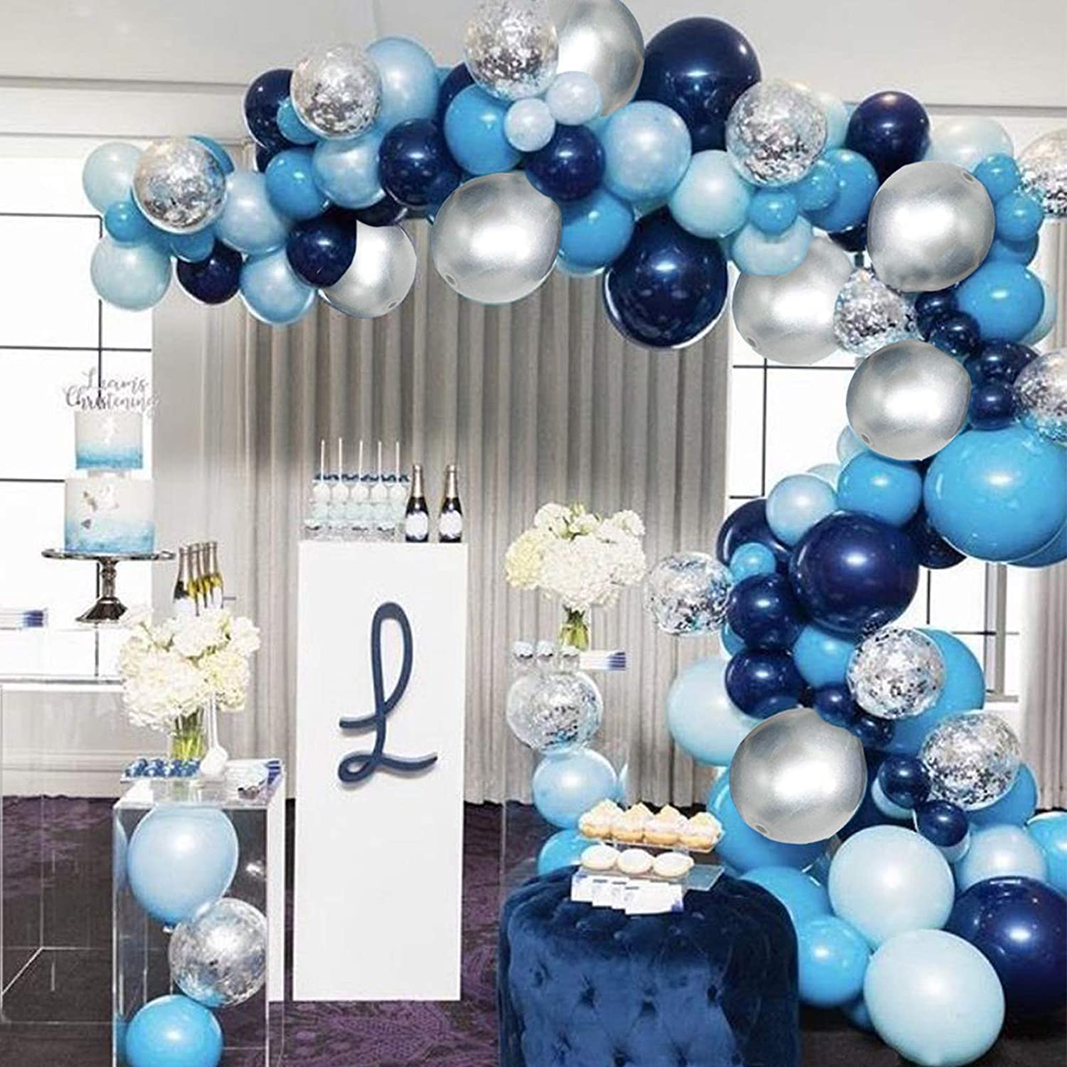 Soonlyn Blue Balloon Garland 124 Pack Navy Silver White Light Blue Balloon Arch Kit for Baby Shower Boy Party Decoration Birthday Decoration