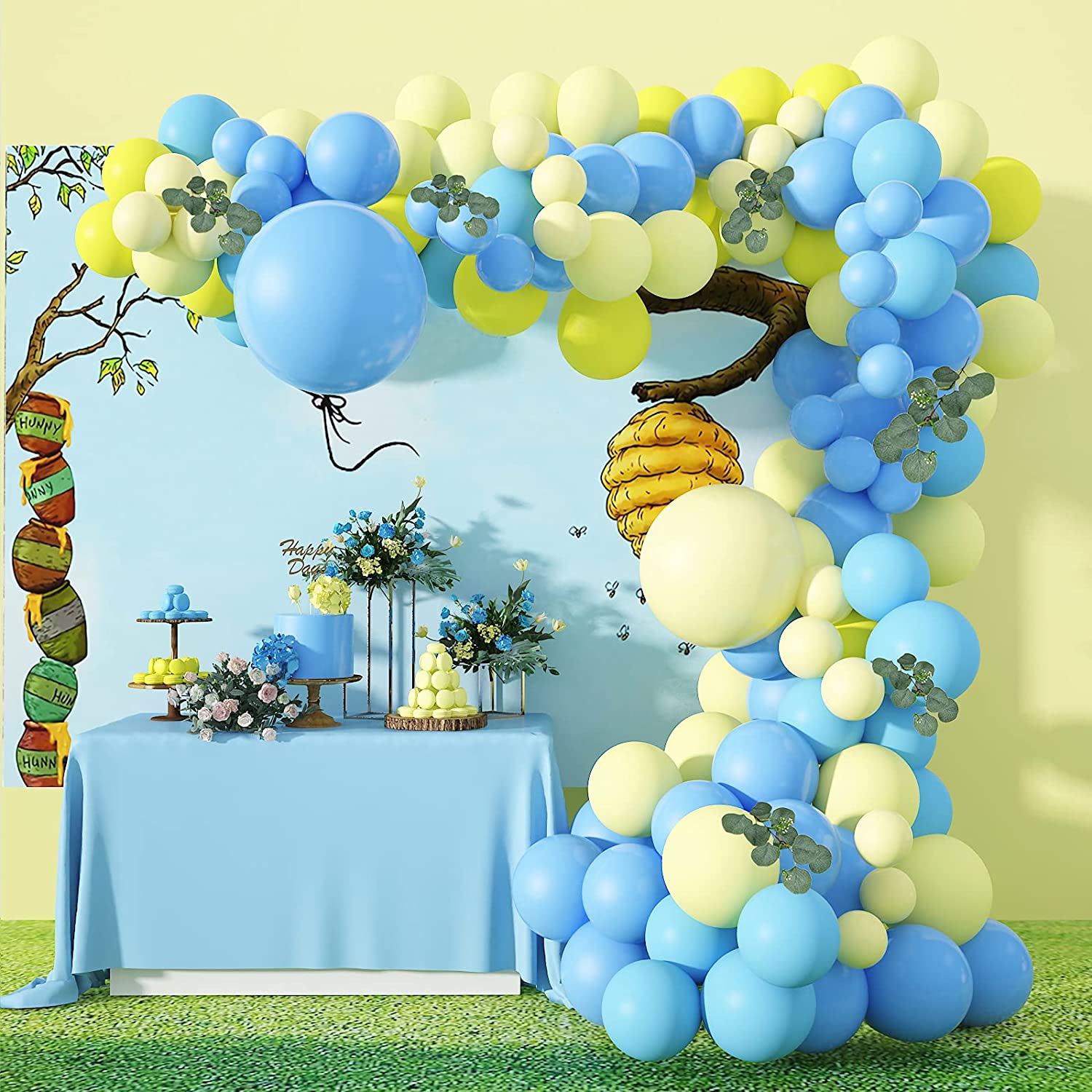 Soonlyn Blue Party Latex Balloons 130 Pcs Baby Blue and Yellow Balloons Garland Arch Kit for Baby Shower Boy Birthday Decorations 18 In 10 In 5 In