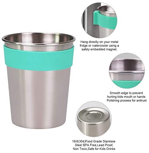 Sophico Magnetic Hanging Cups for Toddlers Kids and Adults, Hanging Cup on Fridge or Water Coolers, for Independent Drinkers (Mix, Stainless Steel)