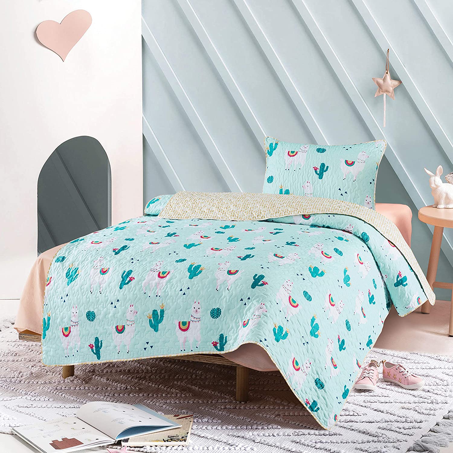 Soul & Lane Lovable Llama Bedding Quilt Set – Twin with 1 sham | Summer Lightweight Quilted Bedspread for Girls