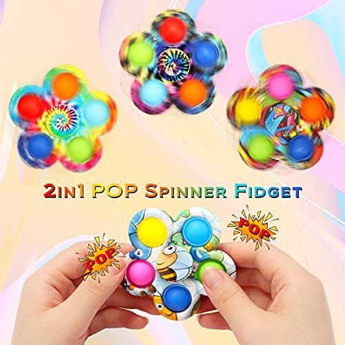 Pop Fidget Popper – 2 in 1 Bubble Fidget Spinner with bubbles built into a plastic frame, new colorful pattern, new version of simple fidget toys. let you have a simple fidget spinner while having a push bubble sensory stress relief toys Safe Material – All of these spinners are built with the high quality plastic and silicone,durable, unbreakable and reusable. Smooth surface will not cut fingers. designed to withstand a ton of fidgeting and give you enough fun Colorful Sensory Design – Tie-dye pop fidget spinner shape colorful, get rid of the single color boring. Popper fidget spinner bright colors can better attract childrens attention. And the bubble fidget toy is equipped with high-speed bearings so that can rotate silently for a long time Stress Relief Sensory Toys – with brightly colored, compact and highly portable can eliminate anxiety by spinning and popping them, helping you relieve your pressure, keep a good mood.They are a perfect home essential whenever you feel bored and irritable at home Amazing gift choices – this sensory fidget toy can be taken into schools, classrooms, offices and travel.Spread the joy and share these popular fidget sensory toys with your loved ones; A ideal present for kids and your friends