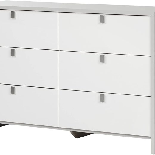 South Shore Cookie 6-Drawer Double Dresser, Soft Gray and Pure White