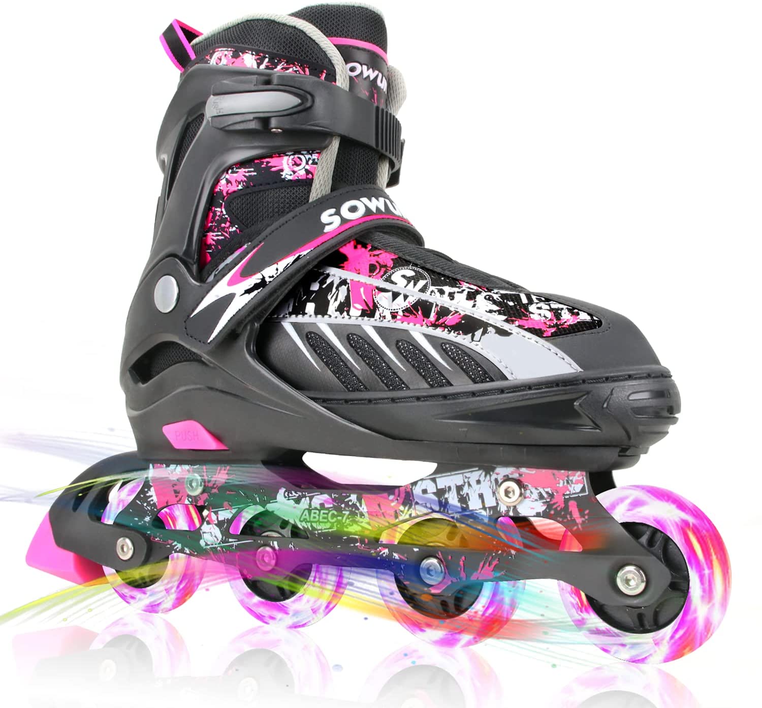 v4 Adjustable Size: Our inline skates have 4 different size , S/M/L/XL, and each size is adjustable . Blades roller are easy to adjust and perfect fit for growing children.