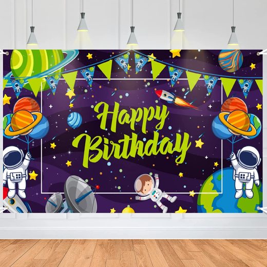 Space Happy Birthday Banner Backdrop, Space Party Decorations, Astronaut Outer Space Birthday Banner Backdrop Background, Space Themed Party Decorations Supplies for Boys Kids 72.8×43.3 Inch