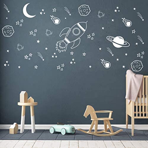 Theme Rocket,Space Surface Recommendation Wall GESTYZ Color White Room Type Dorm Room, Bedroom, Nursery Material Vinyl Installation Type Self-Adhesive Unit Count 1 Count
