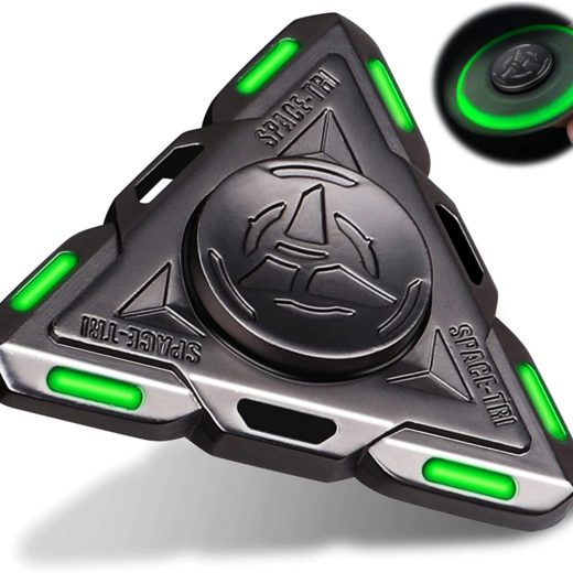 SPACESHIP DESIGN SPINNERS – This must have stress reliever spinning toy features a compact, lightweight, ergonomic design that facilitates effortless handling, making it ideal for both kids and adults! At the office, commuting, in class, studying, in a meeting or watching TV. Making the most of your every moment! Make this anti-stress fidget toy yours and say goodbye to anxiety once and for all!. COOLESET LUMINOUS LIGHT: Glow In The Dark;After absorb light(phone light,flashlight,other light source directly within 10CM)over 30S,the spinner will glow in the dark;No Batteries Need; FIDGET GIFT FOR KIDS ADULTS : 100% Aluminum alloy with CNC machine polished ;Great Birthday or Festival Gift for Your Kids,or As any Special Day Gift!The unique design and the detachable ways of playing the spinners make it more interesting and attractive.. LONG TIME SPINNING ;The Best R188 10 BALLS metal Bearing make it spins over 3-5 min;Endless fun with unqiue spinning; To use the anxiety toys on a table simply press the center to keep it stable and at the same time spin. The fidget toys will continue to spin once you let go.Try it now!. STRESS RELIEF TOYS – With a fidget spinners metal, you will be able to curb unwanted habits such as nail biting and smoking. Instead of fidgeting around with your finger nails you can simply grab the fidget spinner and play with it. Moreover, It can also help with ADD, ADHD, autism and attention disorders in general..