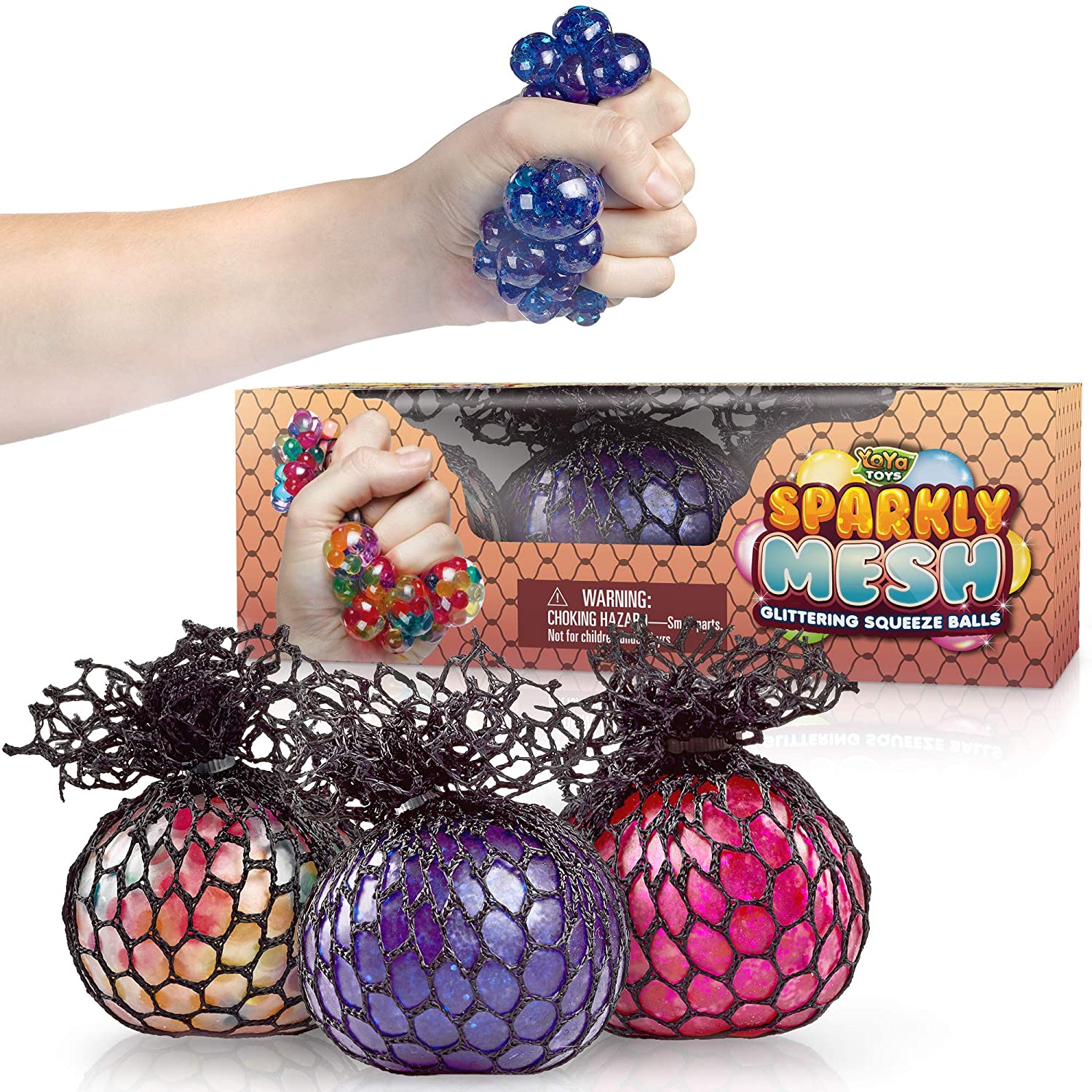 LOOKING FOR A FUN & EASY WAY TO RELIEVE STRESS & ALLEVIATE TENSION The YoYa Toys Sparkly Mesh anti-stress balls are here to offer you endless hours of stress relief and help you not only strengthen your hand muscles, but also stimulate your brain and feel more focused than ever! Are you ready ENHANCE YOUR FOCUS, FEEL MORE RELAXED & PROMOTE BETTER SLEEP with our glittery mesh squishy balls, which are specifically designed to help you improve concentration, relax your mind by stimulating the release of endorphins and help your muscles relax faster, which in turn will help improve sleep. UNLIKE ALL THOSE OTHER CHEAPLY-MADE SQUISHY STRESS BALLS that fall apart after just a few hours, the YoYa Toys hand exercise squeeze balls are filled with premium-quality water beads and eye-catching sparkles, which will not only pass the test of time, but also endure any abuse – even from a 5-year old! SPOIL YOUR LOVED ONES WITH OUR SPARKLY MESH BALLS 3-PACK TODAY and help your kids concentrate better in class, your boyfriend or girlfriend relieve stress at work and even your parents exercise their hand muscles! Our adult stress balls set comes in a deluxe gift box, so you don’t even have to wrap it! GET YOUR SPARKLY MESH STRESS RELIEF SQUEEZE BALLS SET NOW 100% RISK-FREE! That’s right! If you, your children or your loved ones are not 100% flabbergasted with our adorable, perfectly-sized and fun anti-stress balls, then we promise to offer you a prompt and full refund on-the-spot! No Questions Asked!