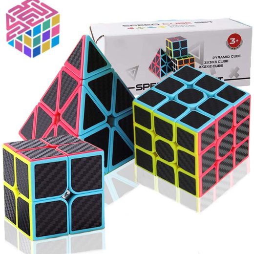 Speed Cube Set, Carbon Fiber Sticker Puzzle Cube Bundle Magic Cube Set of 2x2x2 3x3x3 Pyramid Speed Cube