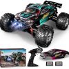 DURABLE BODY STRUCTURE: Anti-corrosion, high strength, anti-impact PA material chassis and Reinforced Body Frame make the RC car not east to break. Aluminum alloy damping springs, widened suspension system and vacuum rubber tires, all-terrain adaptation, whether on rugged slopes or rough mountain roads are as usual