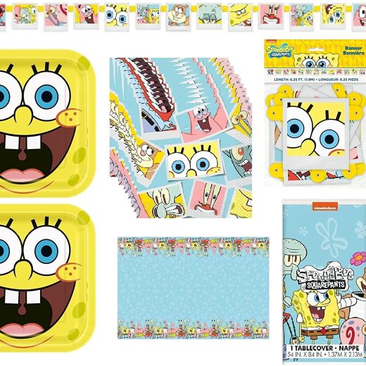 Spongebob SquarePant Birthday Party Supplies Decoration Bundle Pack Includes Lunch Plates, Lunch Napkins, Table Cover, Happy Birthday Banner – Serves 16