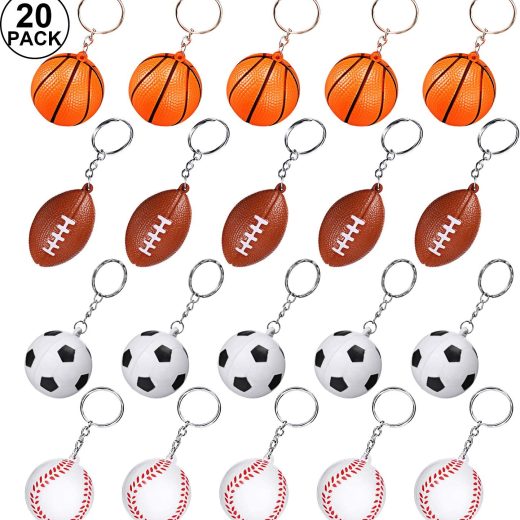 Sport Keychains for Party Favors, School Carnival Reward, Party Bag Gift Fillers (Soccer Football Baseball Basketball, 20 Pack)
