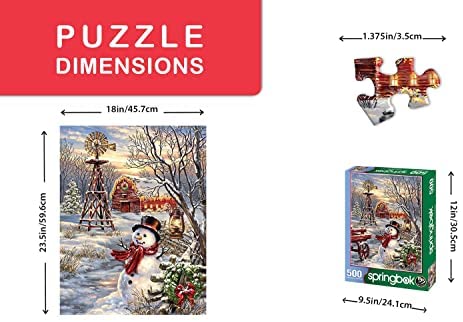 500 PIECE PUZZLE FOR ADULTS – Featuring a finished size of 23.5 inches by 18 inches with a precision cut that ensures a tight, interlocking heirloom-quality puzzle UNIQUE CUT LARGE PIECES – Each puzzle piece is unique and never repeated; Springbok Puzzle pieces are made from thick cut 75 point board, 18% thicker than the industry average ECO-FRIENDLY & HIGH QUALITY – Springbok Puzzles are manufactured with sustainably sourced organic, non-toxic soy-based inks & utilizes 100% recycled puzzle board materials MADE IN USA – Manufactured in Kansas City, Missouri; Springbok Puzzles have been American made since 1963 MISSING PIECE NO WORRY WARRANTY – All Springbok Puzzles are covered with our satisfaction guarantee on materials and craftmanship