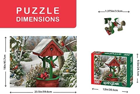 500 PIECE PUZZLE FOR ADULTS – Featuring a finished size of 23.5 inches by 18 inches with a precision cut that ensures a tight, interlocking heirloom-quality puzzle UNIQUE CUT LARGE PIECES – Each puzzle piece is unique and never repeated; Springbok Puzzle pieces are made from thick cut 75 point board, 18% thicker than the industry average ECO-FRIENDLY & HIGH QUALITY – Springbok Puzzles are manufactured with sustainably sourced organic, non-toxic soy-based inks & utilizes 100% recycled puzzle board materials MADE IN USA – Manufactured in Kansas City, Missouri; Springbok Puzzles have been American made since 1963 MISSING PIECE NO WORRY WARRANTY – All Springbok Puzzles are covered with our satisfaction guarantee on materials and craftmanship