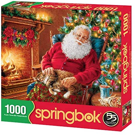 Springbok Puzzles – Santas Cat Nap – 1000 Piece Jigsaw Puzzle – Large 24 Inches by 30 Inches Puzzle – Made in USA – Unique Cut Interlocking Pieces