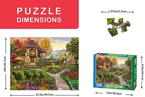 500 PIECE PUZZLE FOR ADULTS – Featuring a finished size of 23.5 inches by 18 inches with a precision cut that ensures a tight, interlocking heirloom-quality puzzle UNIQUE CUT LARGE PIECES – Each puzzle piece is unique and never repeated; Springbok Puzzle pieces are made from thick cut 75 point board, 18% thicker than the industry average ECO-FRIENDLY & HIGH QUALITY – Springbok Puzzles are manufactured with sustainably sourced organic, non-toxic soy-based inks & utilizes 100% recycled puzzle board materials MADE IN USA – Manufactured in Kansas City, Missouri; Springbok Puzzles have been American made since 1963 MISSING PIECE NO WORRY WARRANTY – All Springbok Puzzles are covered with our satisfaction guarantee on materials and craftmanship