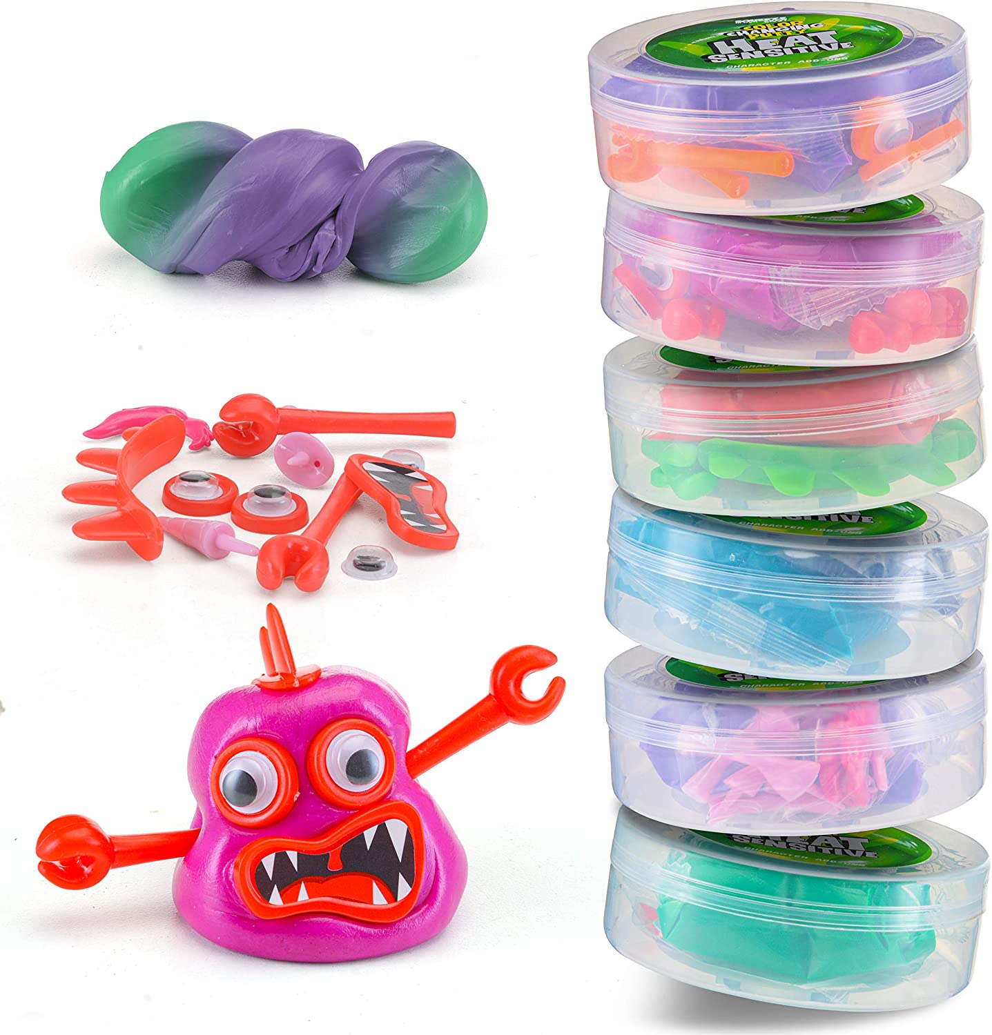 Squeeze Craft Color Changing Frudge Putty Heat Sensitive with Character Accessories for DIY Monsters and More – 6 Pack – for Sensory and Tactile Stimulation, Event Prizes, Slime Parties, Fidget Toy