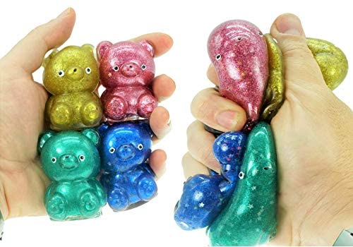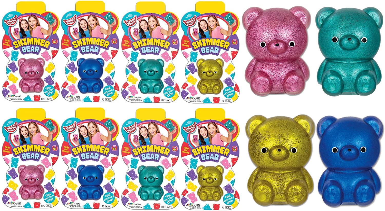 Squishy Gummy Bear Toy (8 Packs Assorted) JA-RU Sparkly Squeeze Stretchy Bear Stress Relief & Sensory Toy. Squishy Toys, Fidget Toys for Boys and Girls, Great Party Favor Plus 1 Sticker 4340-8s