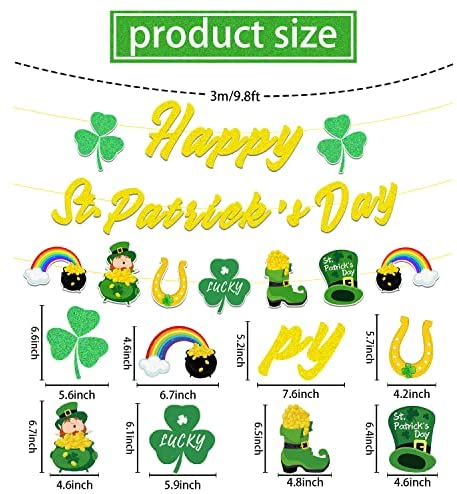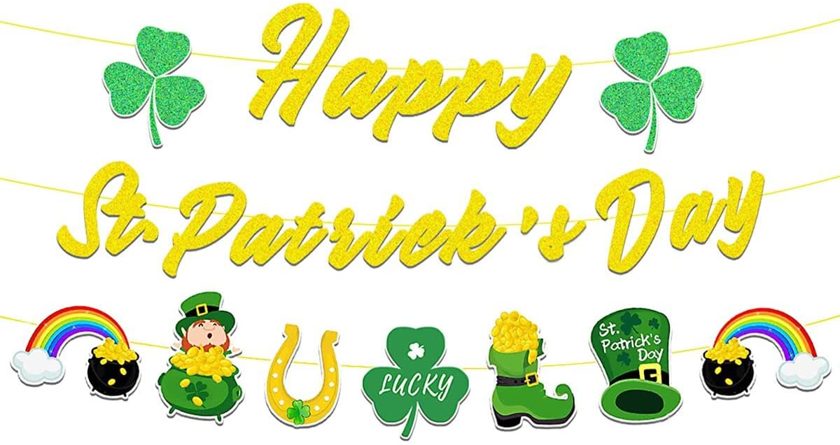 St. Patricks Day Banner, Happy St Patricks Day Banner for St Patrick s Day Decorations, Lucky Banner for St Patricks Day Decorations, and St Patricks Day Garland with Shamrock Banner