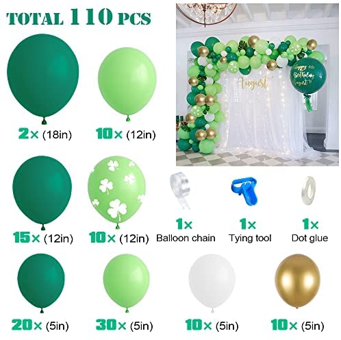 St Patricks Day Decorations, 115 PCS Green Balloon Garland Kit St Patricku2019s Day Balloons Party Decorations Green Gold White Balloons Arch for Baby Shower Kids Birthday 1st 2nd 3rd