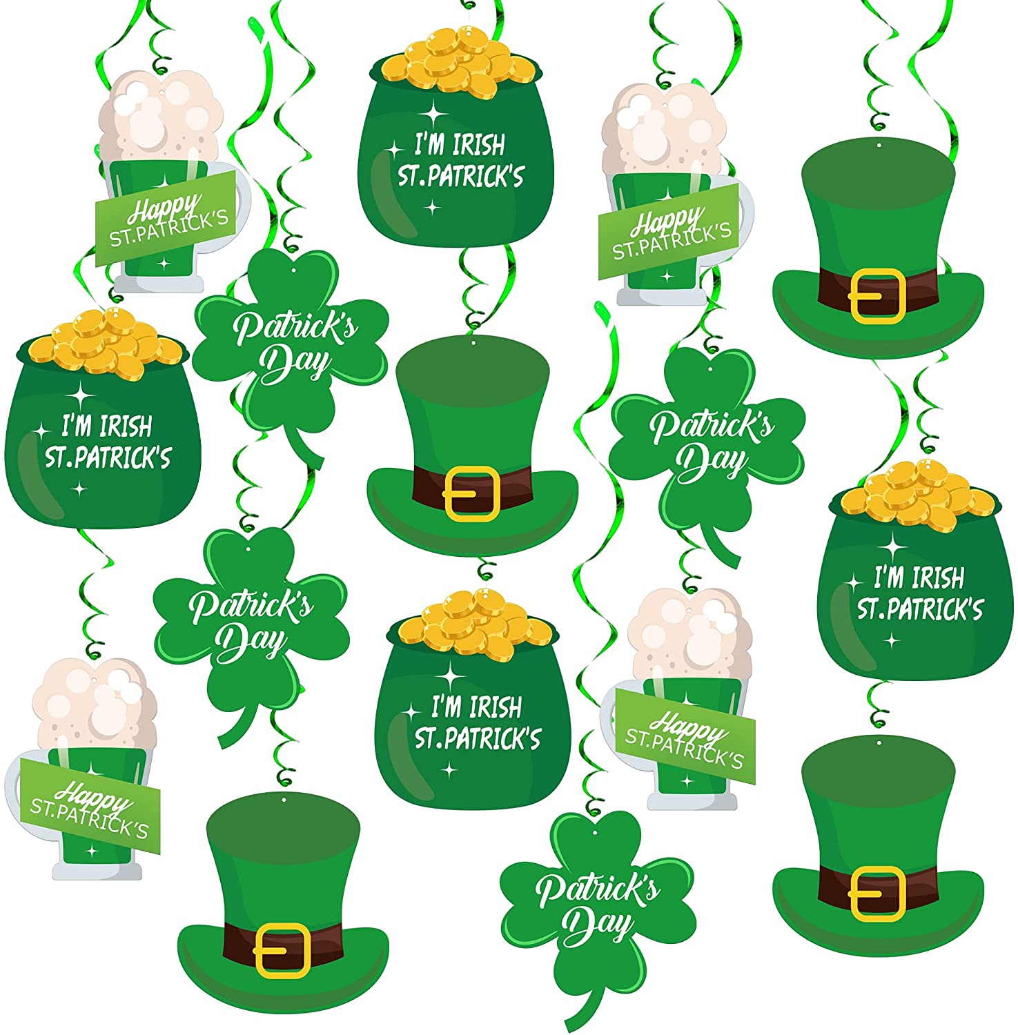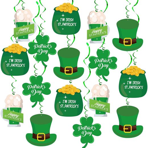 St. Patricks Day Hanging Swirls – 30 Pieces, No DIY | St Patricks Day Hanging Decorations | Irish St. Patricks Day Decorations Classroom | Shamrock Hanging Decorations Home, Foil Lucky Hanging Swirls