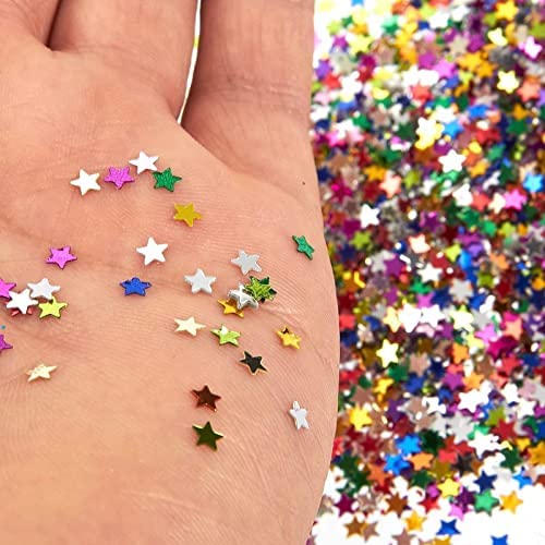 Star Confetti – Metallic Glitter Foil Confetti Star Sequins – Ideal for Balloons, Tables, Art Crafts, Wedding Festival Party Supplies, DIY Decorations – Multicolor, 0.1 inches, 7 Once