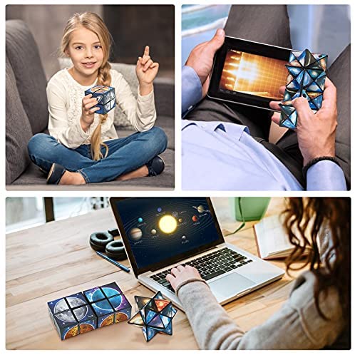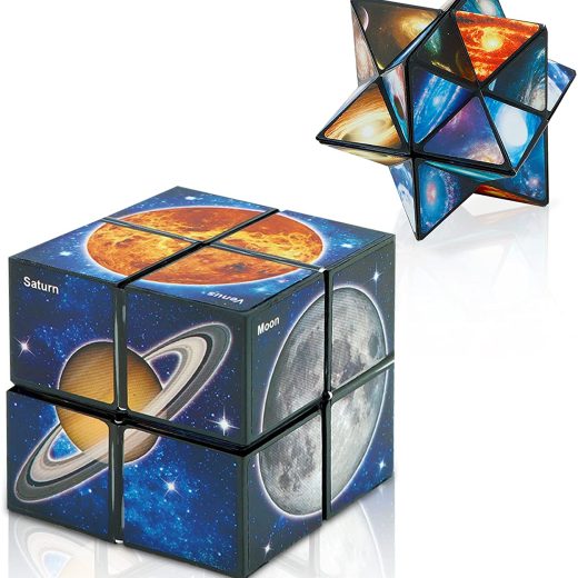 3D Magic Cube Fidget Toy: The color is a beautiful galaxy space, include Saturn, Uranus, Pluto, Earth, Moon, Venus, and other colorful and magical starry sky stickers that help kids know more about the solar system. One is Divided Into 2: This Yoshimoto cube can be divided into 2 hollow cubes or stars, the two hands can play together at the same time. You can create many different shapes. How fun it is! High Quality and Safety Material: This star magic cube is made of ABS material that has a smooth surface so that can infinitely flip without block. Cube size: 2.2×2.2×2.2 in. Let you easily carry it wherever you go and have fun anytime. Anti-anxiety and Stress Relief: It relieves nervousness and anxiety while doing a task or simply waiting, helps a fidgeter focus on the task at hand, and creates a feeling of relaxation for you, even can improve the flexibility of your fingers. Very suitable for any environment such as office, school, home, etc.! Perfect Gift: This star cube is an ideal gift for children and even adults’ birthdays and holidays. Nice gifts to families, friends, boys, girls, and especially people who are stressed and anxious.