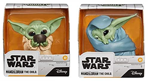 Star Wars The Bounty Collection The Child Collectible Toys 2.2-Inch The Mandalorian u201cBaby Yodau201d Sipping Soup, Blanket-Wrapped Figure 2-Pack , Green