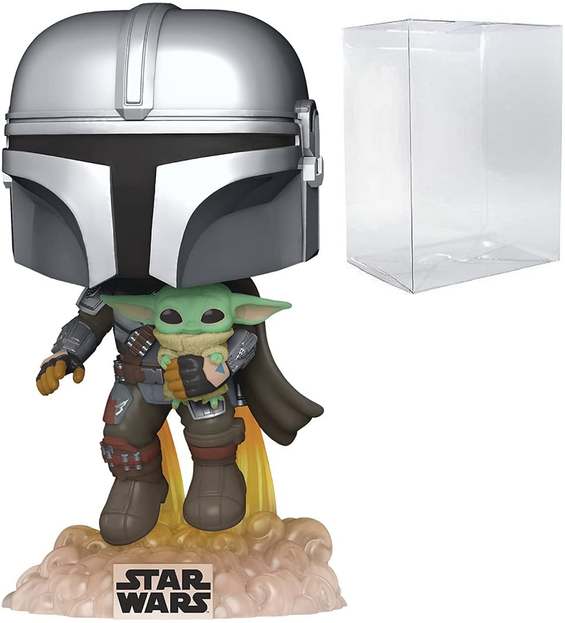 Star Wars: The Mandalorian – Mandalorian [Din Djarrin] Flying with Grogu [The Child] Funko Pop! Vinyl Figure (Bundled with Compatible Pop Box Protector Case)