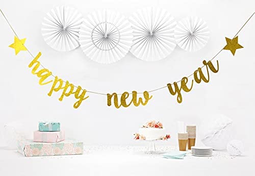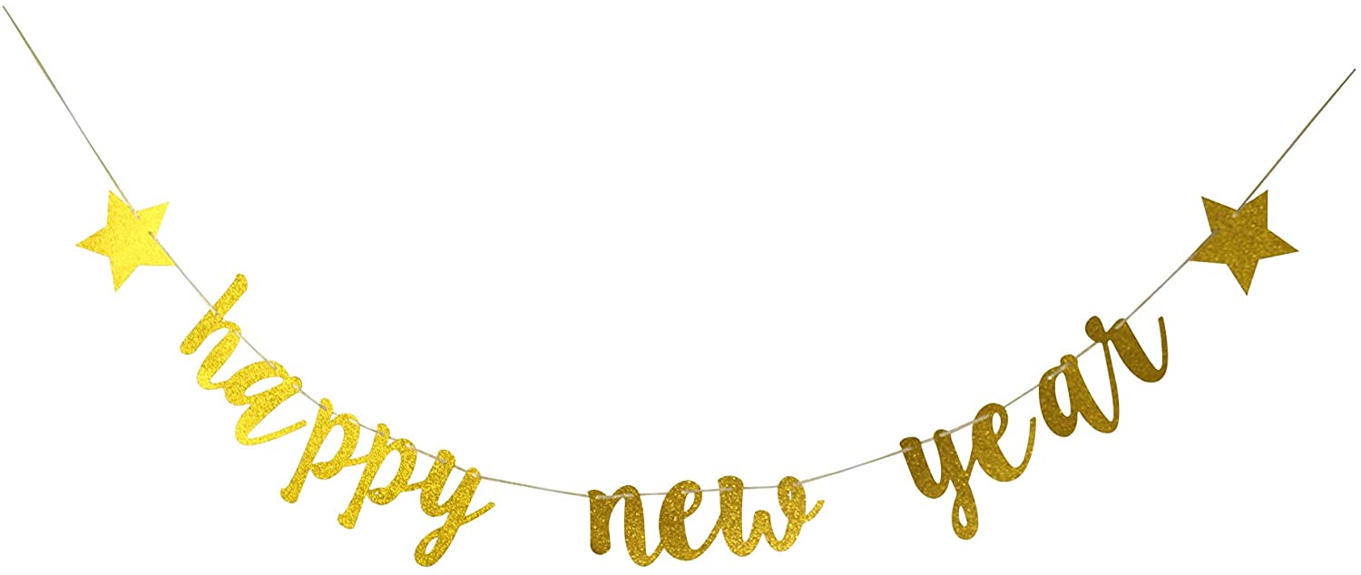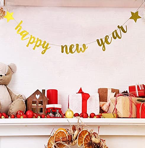 Starsgarden Happy New Year Banner for NYE Decorations 2022 – Gold Glitter | Happy New Year Sign for 2022 New Years Decorations | New Years Eve Party Supplies 2022