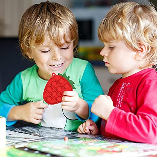 Strawberry Mini Push it Pop Fidget Toy, Small Poppit Keychain Fidget Toys, Anti-Anxiety Stress Relief Hand Toys Set with Key Chain, Simple Dimple Fidget Popper Pack Gifts for Kids Adults
