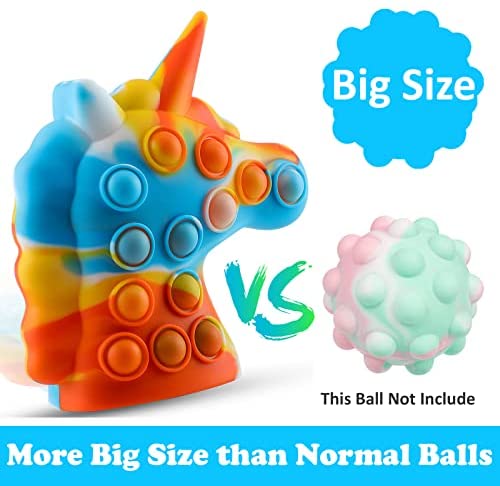 Unicorn 3D Pop Ball The pop stress balls combine 2 in 1 function design. It is combination of squeeze ball and push bubble pop toys. There are many bumps evenly allotted on the unicorn ball. When you press down multiple bumps and squeeze the ball, you will hear a collection of fantastic popping sounds, This is simply funny, which will clear away your terrible mood. Unicorn shape and pressable design will shine on you. Durable & Safe Material Fidget pop 3d ball toy made of non-toxic Food-Grade silicone material, does not contain any harmful substances, and has no unpleasant plastic odor, Soft and comfortable touch design making them ideal for kids and adult play. Anxiety & Stress ReliefSensory squeeze balls is a designed puzzle game for those who are stressed or anxious, which has bright color and funny push bobule, it will make slight popping sound, which will make you relax and it also can make you focus on something you are working on. Have Fun Anywhere This kids Toy is lightweight and easy to carry. You can take it to anywhere. very suitable for offices, homes, churches, libraries, stations, special education classrooms, physiotherapy rooms, sensory rooms and tourist sites, you can play anywhere Have fun. Great Gift for Kids & AdultsSquishy ball fidget toy is suitable for all ages that will be the perfect Christmas gift for kids, families or friends. For fun Christmas party favors, classroom rewards, carnivals, prize boxes, Easter basket stuffers, Christmas stocking stuffers, goodie bag fillers.