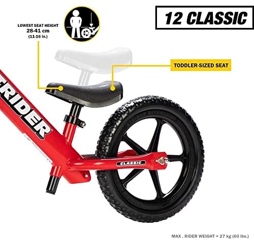 Learn To Ride – The Strider 12 Classic is a great, unembellished choice for those that want to jump in the pool but arent quite ready to cannonball. The budget-friendly Strider 12 Classic comes equipped with our no-flat tires, which are ready to take the punishment that only mud puddles and heavy riding can dole out.