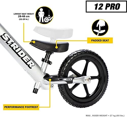 Xl Seatpost, Padded Seat And Upgrades – Along with the standard seatpost (18-36 months), the adjustable 12 Pro includes the XL seatpost, which will extend the use of your 12 Pro to 36-60 months (under 60lbs).