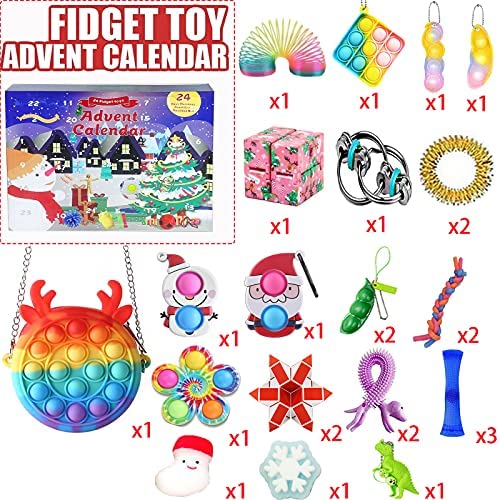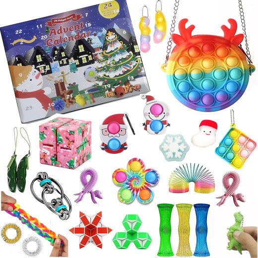 Stroman Christmas Calendar 25 Piece Sensory Annoyance Countdown Fidget Toy Set, Stress Relief Anxiety Toys for Kids and Adults, Squeeze Stress Reduction Kids Adult Mystery Box Toy Pack (Blue) (Blue)