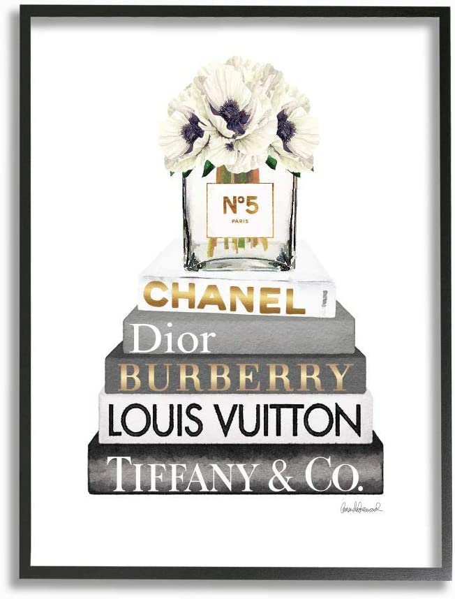Stupell Industries Blooming White Floral Display on Glam Designer Bookstack Wall Art, 11×14