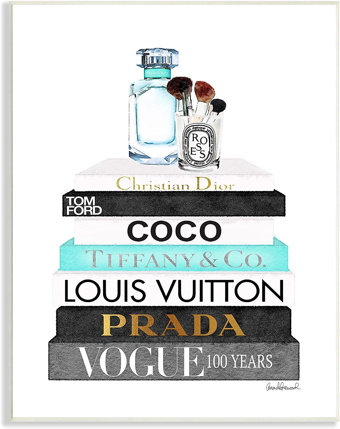 Stupell Industries Book Stack Perfume Brushes Glam Fashion Watercolor Wall Plaque, 10 x 15, Design by Artist Amanda Greenwood