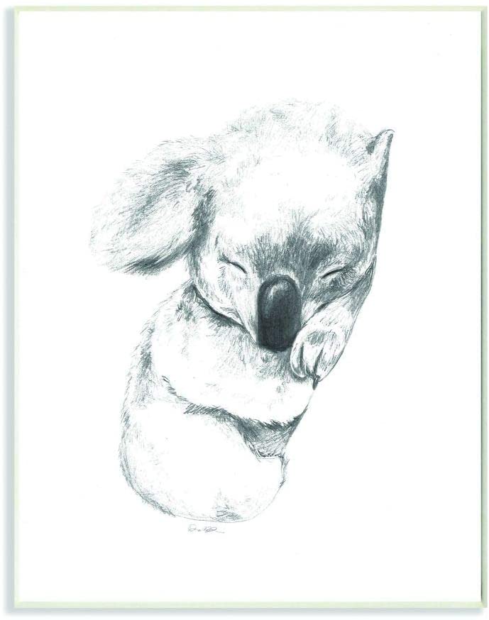 Stupell Industries Cute Koala Baby Animal Neutral Grey Drawing, Design by Artist Daphne Polselli Wall Art, 10 x 15, Wood Plaque