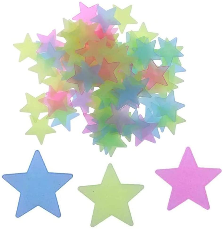 SUKPSY 100 pcs Mixed Color Glow in The Dark 3D Stars Luminous Fluorescent Plastic Wall Sticker for Kids Baby Room Bedroom Ceiling Home Decor