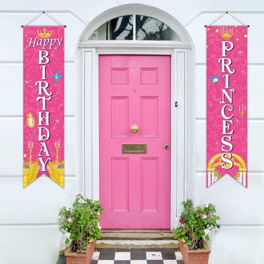 Princess decorations banner set: happy birthday banner, 47.2 x 11.8 inch (L x W), princess banner, 47.2 x 11.8 inch (L x W), fit for princess as a royal welcoming front door sign or party decoration, royal parade, girl birthday festival, travel themed parties, happy birthday party Beautiful royal photo backdrop sign: princess sign serves as beautiful decorations for girl baby showers, designed with classic princess pattern Birthday wall pennants material: the royal check flag is made of polyester, it is easy to hang; With secure strings, it wont get blown and twisted about with the slightest breeze Girl birthday decoration application: the royal check flag as welcome front door sign or party decoration, delicate garland can be hung on ceilings, windows, gardens, parade and so on Create princess atmosphere: the princess flag set party decorations are amazing to boost atmosphere for holding princess party, princess parade